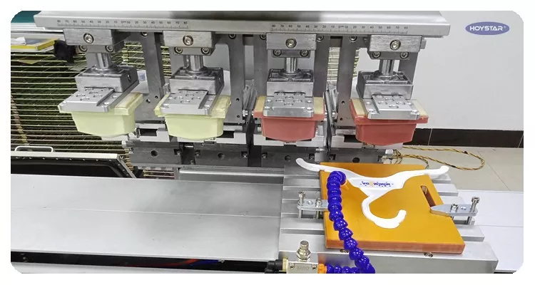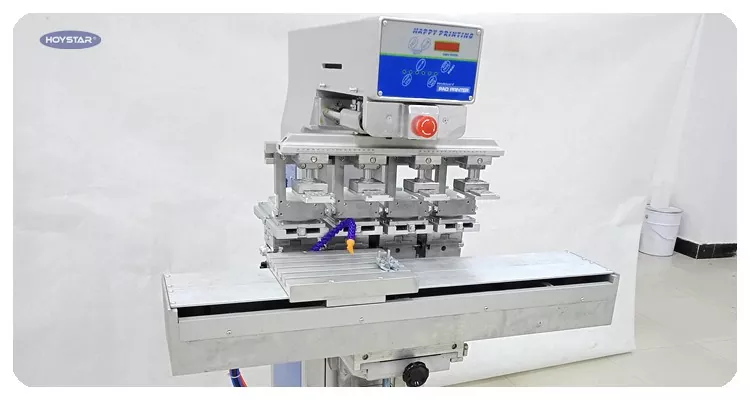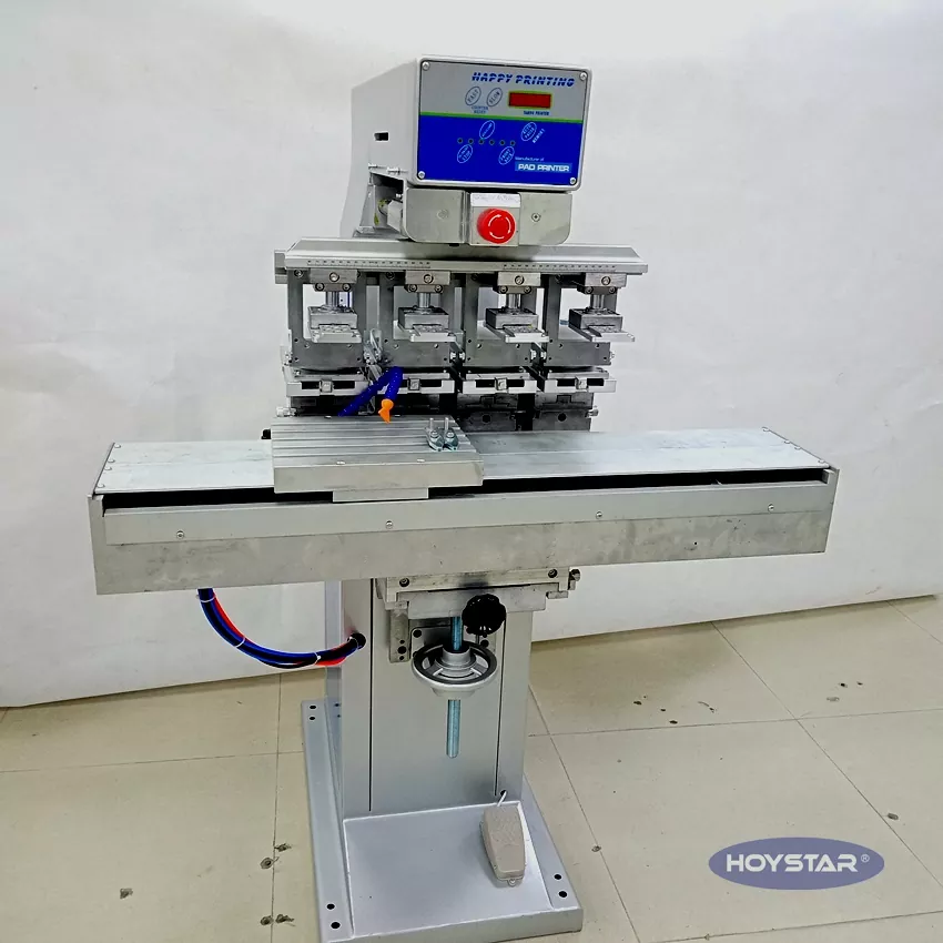 Tato 4barevná tamponová tiskárna HOYSTAR s kyvadlovým pracovním stolem pro kryt je vysoce výkonné a nákladově efektivní tiskové zařízení. Stroj nabízí pohodlné nastavení, stabilní provoz a dobrý tiskový efekt. Stroj poskytuje stálou kvalitu tisku a je vhodný pro tisk široké škály předmětů, jako jsou elektronické produkty, plastové skořepiny, hardwarové produkty, papírenské zboží, drobná umělecká řemesla, stejně jako malá loga na povrchu dárků a další. Dokáže splnit různé tiskové požadavky zákazníka.