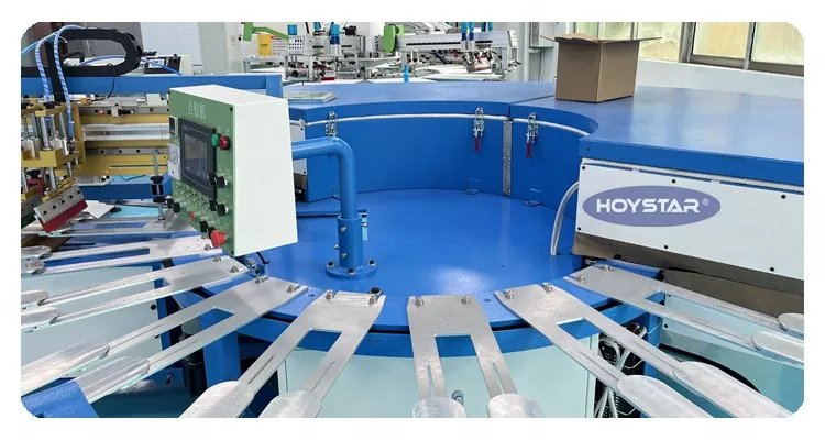 Jako profesionální výrobce v Číně bychom vám rádi poskytli vysoce rychlý sítotiskový stroj na protiskluzové ponožky HOYSTAR. Naše stroje využívají ovládání PLC a dotykové obrazovky a používají se hlavně pro tisk různých typů ponožek. Stroj je vybaven sušicí pecí, která dokáže dobře vysušit silikon a inkoust.