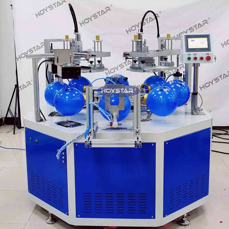 Jako profesionální výrobce a dodavatel je automatický sítotiskový stroj HOYSTAR 2 Color Balloons navržen pro tisk na latexové balónky. Vybaveno otočným pracovním stolem, automatickým foukáním, automatickým otáčením, automatickým sušením, funkcemi automatického vykládání. Ovládání dotykové obrazovky PLC, uživatelsky přívětivé rozhraní pro bezpečné a intuitivní ovládání. Stroj kombinuje rychlost, přesnost a snadnost použití.