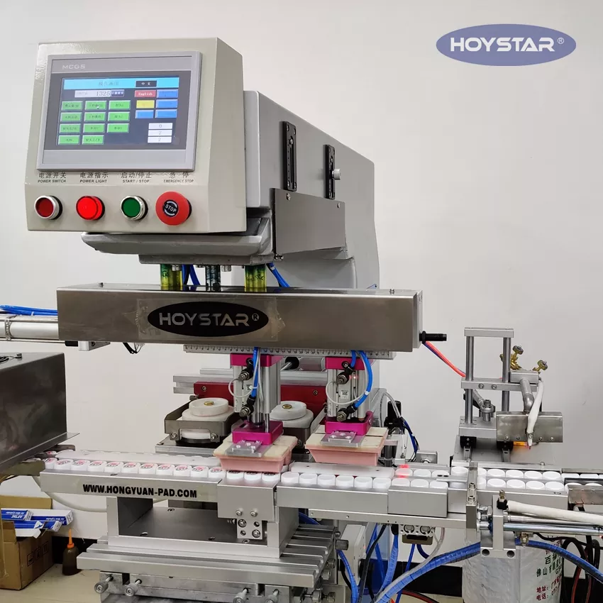 HOYSTAR je slavný výrobce a dodavatel automatických dvoubarevných uzávěrů lahví v Číně. Pokud chcete nakupovat kvalitní a nejnovější produkty, kontaktujte nás prosím ihned. Tento automatický dvoubarevný tamponový tiskařský stroj na uzávěry lahví HOYSTAR je vysoce výkonné a praktické tiskové zařízení, speciálně navržené pro tisk na uzávěry lahví. Stroj využívá plně automatický design, vybavený automatickým podáváním, automatickým ošetřením plamenem, automatickým tiskem, automatickým sušením a automatickým vykládáním pro realizaci stabilní výroby a úsporu pracovní síly. Je vhodný pro potřeby tisku uzávěrů lahví v průmyslových odvětvích, jako jsou nápoje, kosmetika, denní chemikálie a další. Dokáže splnit specializované požadavky zákazníků na tisk na výrobky s uzávěrem lahví.