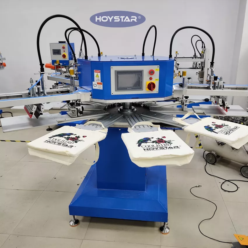 Jako profesionální výrobce a dodavatel Tento stroj na sítotisk triček HOYSTAR Automatic 4 Color je navržen speciálně pro textilní průmysl. S působivým výkonem až 1200 kusů za hodinu může zvýšit efektivitu vaší výroby. Design pro tisk štítků na oděvy, štítků a tašek, může změnit přípravek pro tisk jiného typu produktu. Stroj je vybaven otočným pracovním stolem, který umožňuje rychlé a pohodlné nakládání a vykládání – minimalizuje prostoje a maximalizuje průchodnost.