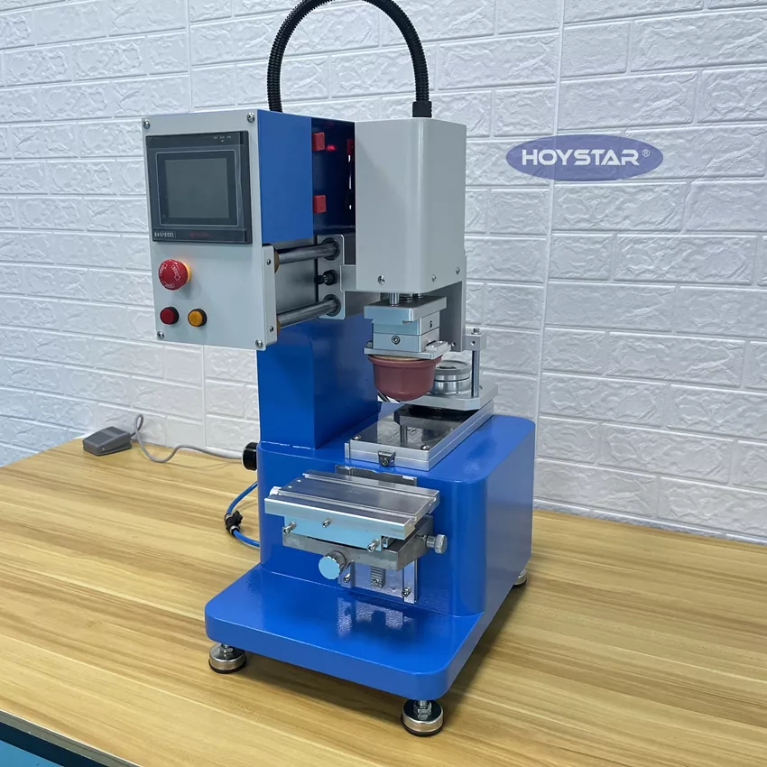 Jako profesionální výrobce v Číně bychom vám rádi poskytli vysoce účinný stolní jednobarevný tamponový tiskový stroj HOYSTAR. Naše stroje využívají ovládání PLC a dotykové obrazovky a jsou vhodné pro tisk různých produktů. Stroj se vyznačuje konkurenceschopnou cenou spolu s malým půdorysem a stabilní kvalitou tisku.