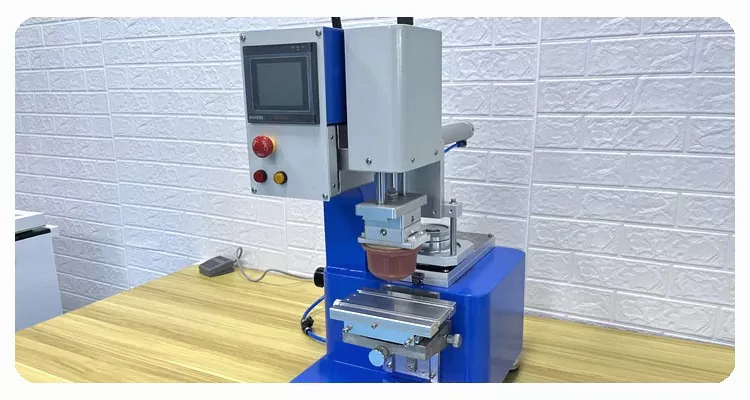 Stolní jednobarevný tamponový tiskařský stroj s ovládáním PLC dotykovou obrazovkou, velmi snadné ovládání. S poloautomatickým i automatickým režimem se mohou operátoři přizpůsobit různým potřebám výroby.