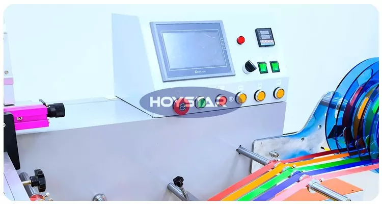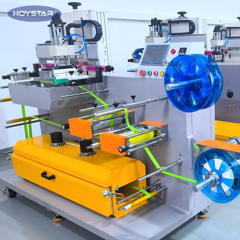 HOYSTAR je spolehlivý výrobce a dodavatel v Číně; Tento sítotiskový stroj HOYSTAR Roll To Roll je určen pro tisk na různé pásky. Režim dvojité cívky zajišťuje stabilní podávání a hladkou produkci. Ovládání dotykové obrazovky PLC, uživatelsky přívětivé rozhraní pro bezpečné a intuitivní ovládání. Dvouvrstvá sušicí pec s cirkulací horkého vzduchu dokáže inkoust rychle a rovnoměrně vysušit.