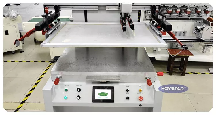 Poloautomatický plochý sítotiskový stroj HOYSTAR jako profesionální výrobce a dodavatel je určen pro tisk na různé ploché předměty, je vybaven vakuovým sacím pracovním stolem, který účinně zabraňuje posunu plochých tiskových materiálů Ať už tisknete papírem nebo plastovou fólií, tato funkce zaručuje, že každý tiskový produkt splňuje vysoce kvalitní požadavky zákazníka.